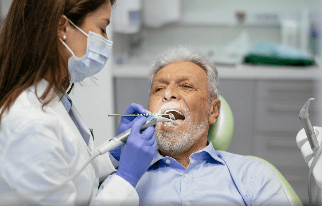 der die Zähne unter lokaler Betäubung auch unterhalb der Zahnfleischlinie gründlich